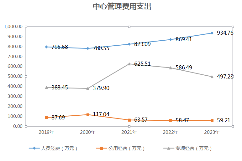 (五)管理费用支出。2023年,管理费用支出1491.25万元,同比减少1.53%。其中,人员经费934.76万元,公用经费59.21万元,专项经费497.28万元。