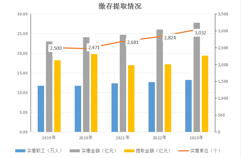(一)缴存。2023年,新开户单位307家,净增单位208家,新开户职工1.42万人,净增职工0.56万人;实缴单位3032家,实缴职工13.25万人,缴存额27.8亿元,分别同比增长7.37%、4.41%、6.68%。2023年末,缴存总额281.08亿元,同比2022年增长10.97%;缴存余额80.68亿元,同比增加8.35亿元增长11.54%。