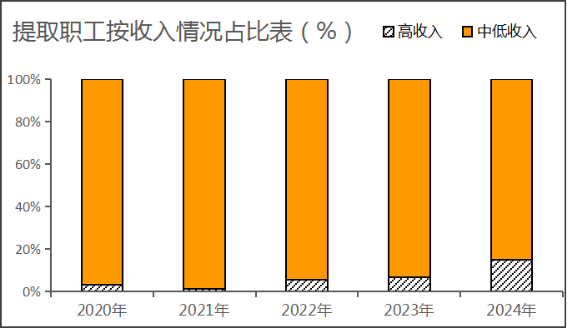 提取职工中,中、低收入占96.46%,高收入占3.54%。
