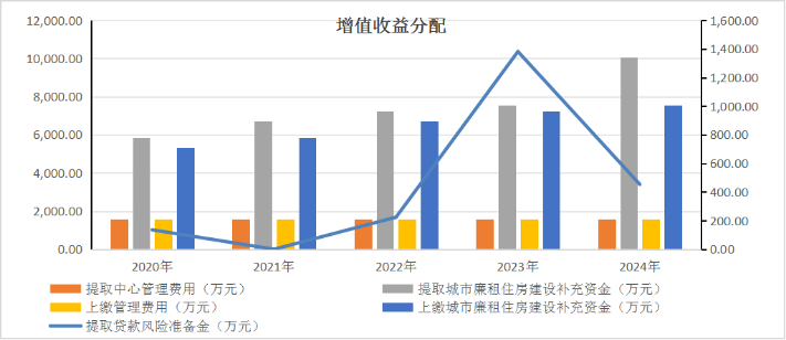(四)增值收益分配。2024年,提取贷款风险准备金453.37万元,提取管理费用1600.05万元,提取城市廉租住房(保障性安居工程)建设补充资金10071.12万元。
