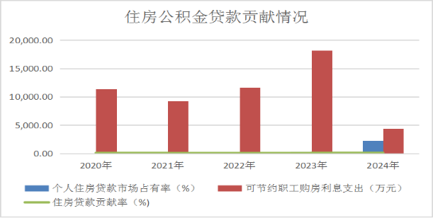 个人住房贷款。2024年,支持职工购建房52.55万平方米,年末个人住房贷款市场占有率为27.59%,比上年末增长3.14个百分点。通过申请住房公积金个人住房贷款,可节约职工购房利息支出4417.73万元。
