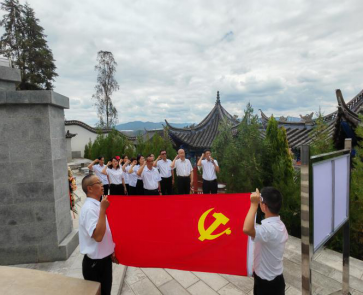 活动第二站,在大姚县金碧镇七街村委会苍西村红色文化公园开展红色教育。带着习近平总书记“我们走得再远都不能忘记来时的路”的谆谆嘱托,党员干部们瞻仰了赵祚传烈士故居、拜读了赵祚传烈士的五封遗书、聆听了赵祚传烈士的生平事迹和革命斗争经历,接受了一次深刻的爱国主义教育和革命传统教育。全体党员干部怀着对革命先辈的无限崇敬之情,来到烈士陵园向赵祚传烈士敬献花篮、集体鞠躬、肃立默哀,寄托无限敬仰和哀思之情。面对鲜红的党旗再次重温了入党誓词,回顾入党初心,坚定理想信念。随后,到七街人民公社会堂召开主题党日座谈会,机关党支部书记钱金明为7月过政治生日的4名党员送上了政治生日贺卡。州公积金中心党组书记、主任杨柏繁为党员干部讲授了“学好党的二十大精神 传承红色基因 全面推进公积金工作高质量发展”专题党课。